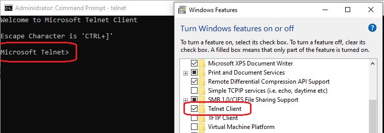 Now one small size Windows features will appear. Scroll down the mouse, select Telnet Client and click on OK,